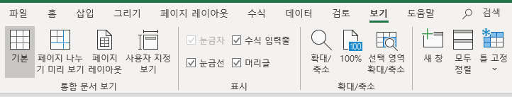 세로줄을 고정하고 싶을 때는 첫 열 고정을 누르면 된다.