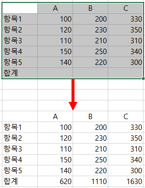 1. 1열(세로줄)만 자동계산 사용하기