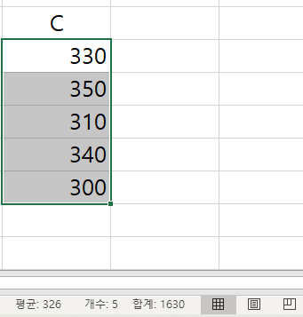 굳이 함수/자동계산을 사용하고 싶지 않다, 그러면 평균, 개수, 합계를 원하는 셀들을 드래그하고 엑셀의 하단 오른쪽을 보면 값이 표시된다.