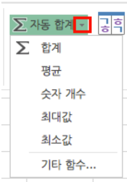 자동계산 버튼은 기본이 자동합계이기 때문에 만약 다른 연산을 사용하고 싶다면 역삼각형(▼)을 눌러 선택해야한다.