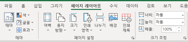 엑셀 상단에 페이지 레이아웃-크기 조정에 보면 너비, 높이, 배율을 설정할 수 있다.