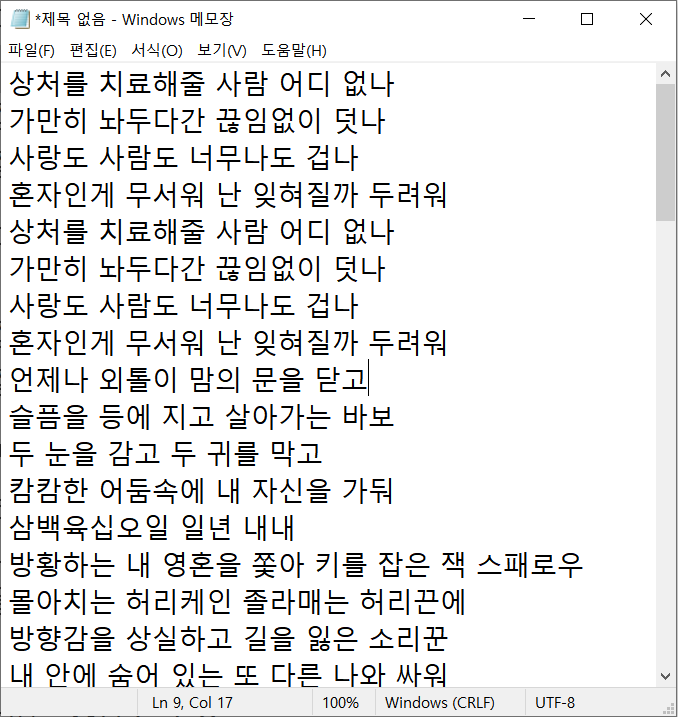 1. 노래 가사를 메모장에 붙여넣는다.