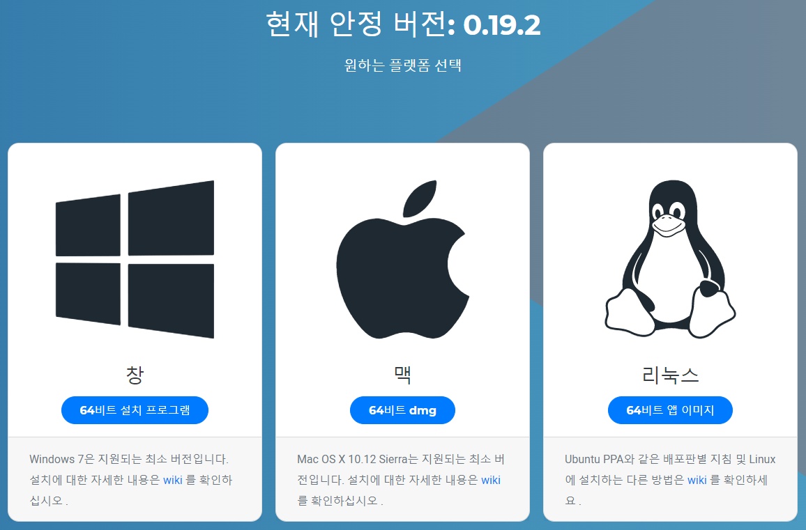 아래 링크에 들어가서 자신의 컴퓨터 사양에 맞는 버전을 다운로드하면 된다.