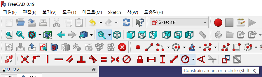 위쪽에 보면 사각형 치수 입력할 때 사용했던 ↔ 오른쪽에 원이 있을 것이다.