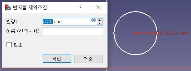 혹은 원을 클릭해 선이 초록색인 상태면, 바로 반지름 제약조건 창이 뜬다.